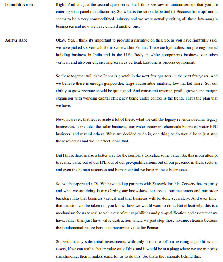 See the total investment for them here is 18crores and they are almost hinting that they will sell off their solar epc/arm eventually at profit. They are not providing management bandwidth here to this smallish bet/vertical.