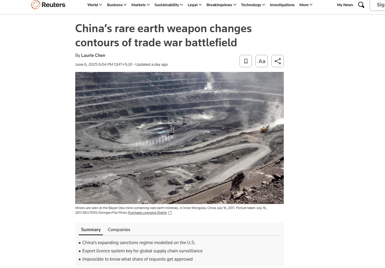 This gives them leverage against the entire world. And they’re using it. Last year China placed export restrictions on rare earth magnets as a response to Trump’s tariffs. The world’s supply chains were in disarray, and the tremors were felt in India too.