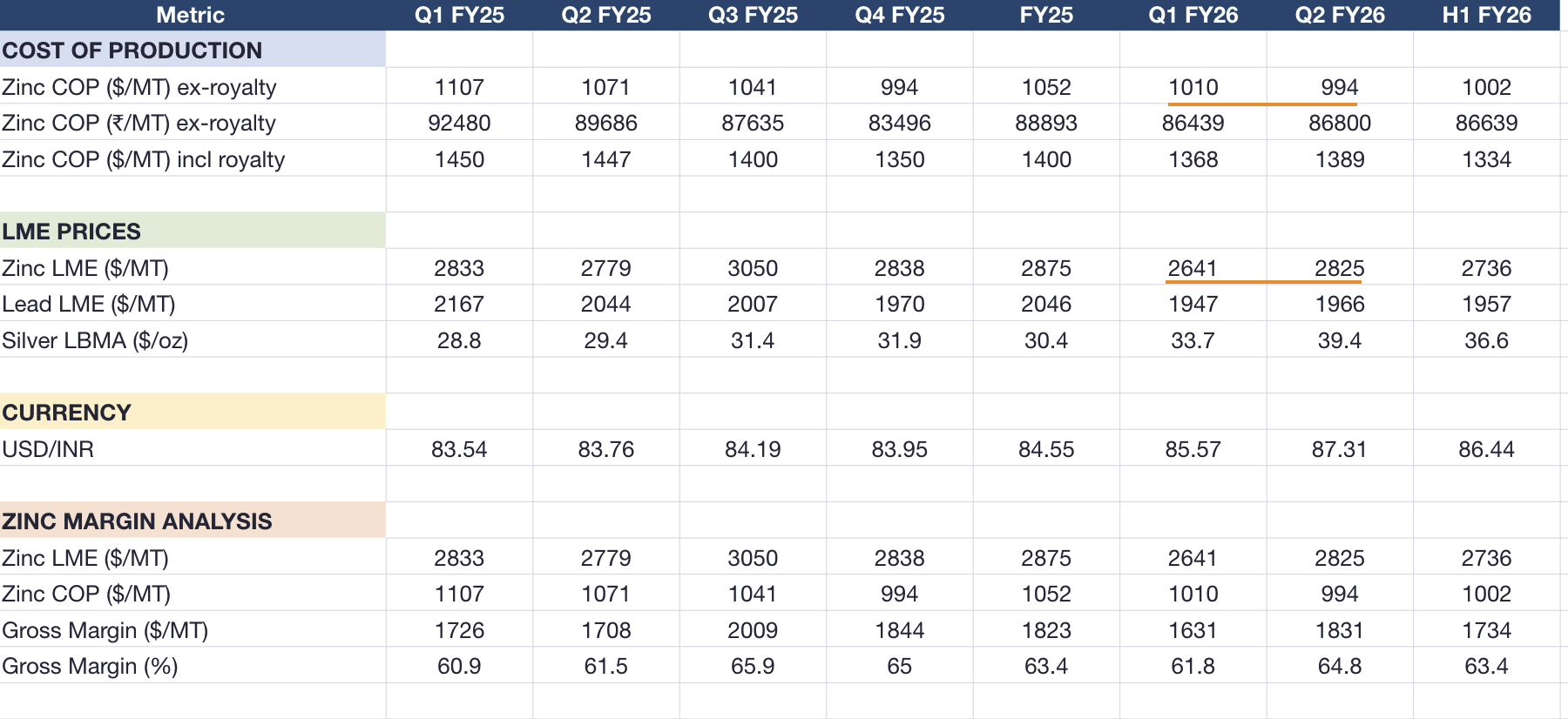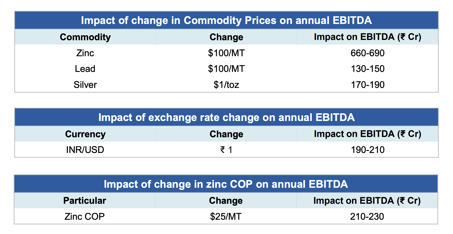 The other thing is Zinc COP - the company has gradually reduced cost of production of zinc which is now down to $994 and guidance is go as low as $950 by Q4. This adds another 300-400 Cr to EBITDA from efficiency improvements.