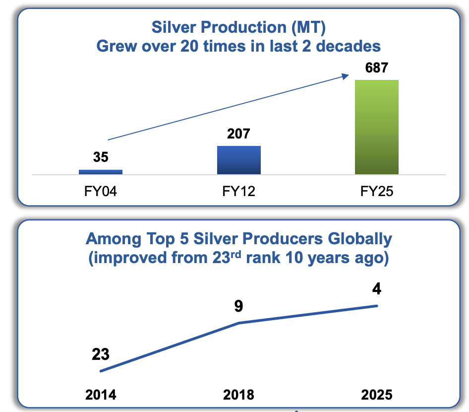 HZL produces predominantly zinc, lead and silver. It is one of the lowest cost producers in the world and has also is 4th largest in Silver and its impressive how the company has vaulted from 23rd to 4th position in a span of ~10 yrs in silver.