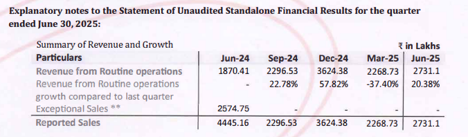 However, in the current results Q1FY26 - the revenue states for ‘routine operations’ (comparable to the current numbers) is stated as 18.70 cr (For Q1FY25).