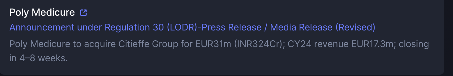 Poly Medicure raised 1,000 crores in a QIP in the previous quarter, which will be used for new capital expenditures, corporate purposes, working capital requirements, and acquisitions. The company plans to set up three new facilities in Haryana, Rajasthan, and Uttarakhand by mid to end of 2026, focusing on renal dialysis, cardiology, and critical care.