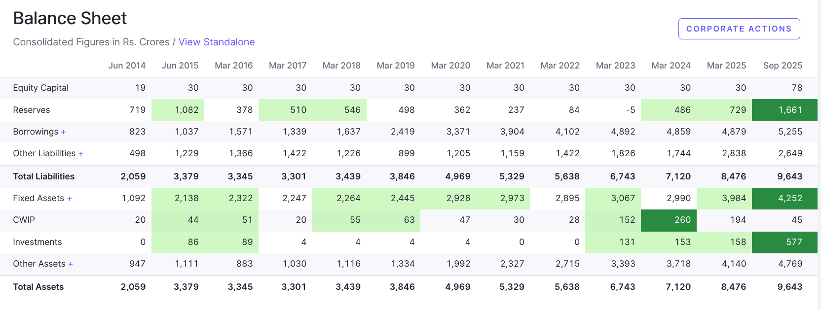 Debt-to-equity appears elevated given equity capital + reserves (~₹1,739 Cr).