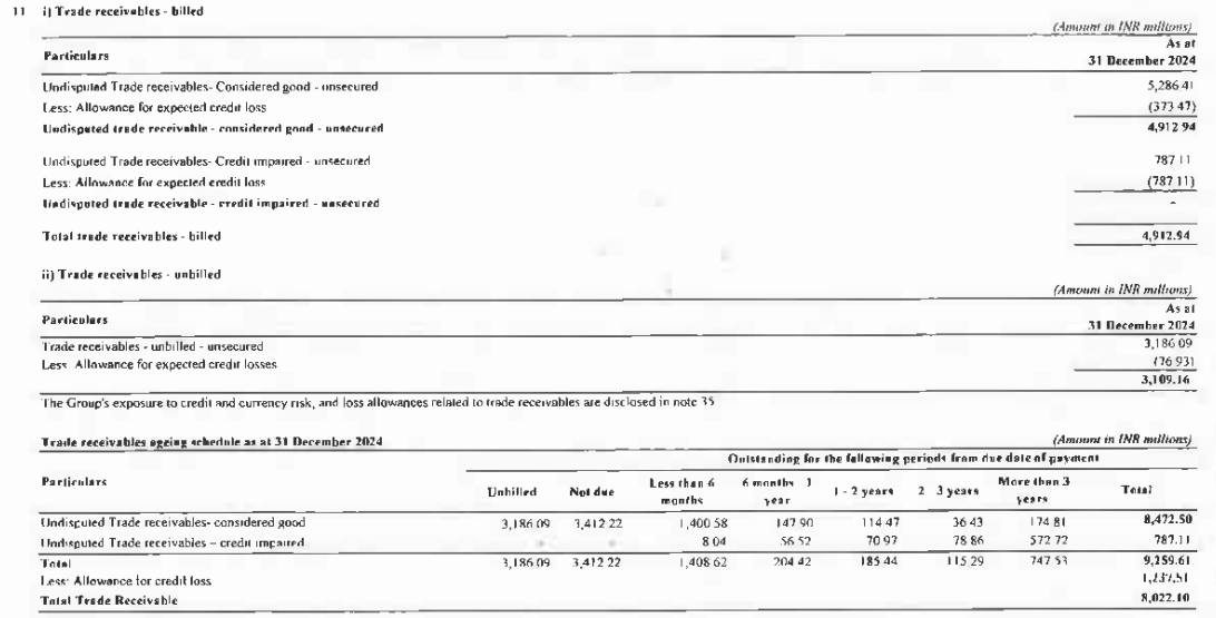 Considering quarterly revenue run rate of approx 800 Cr – this seems to be reasonable, also from aging table available in published document most of it is either not due or due within 180 days.