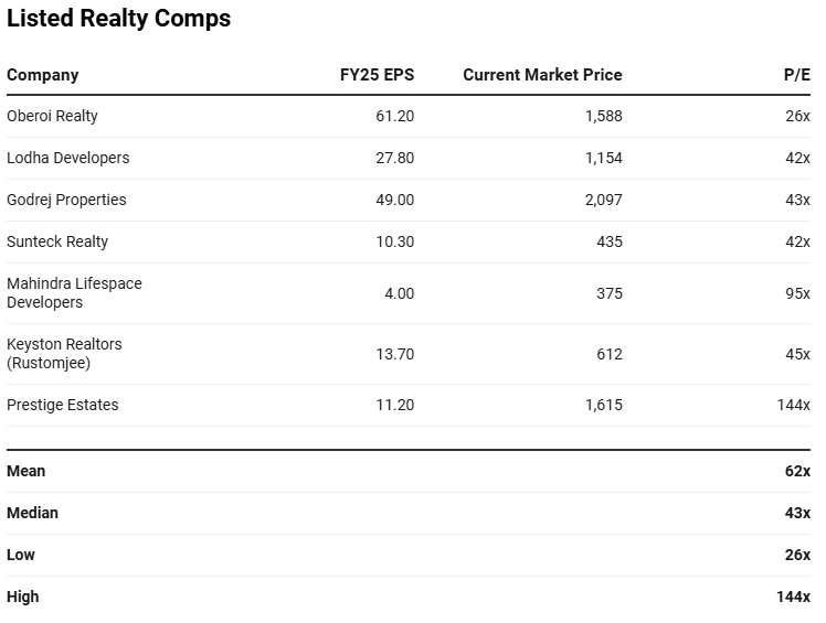 | Kolte-Patil | ~4,950 | ~0.3x | ~18% | ~0.8x |