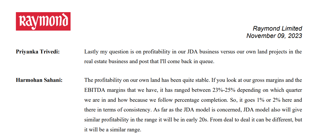 They’re not your typical developer that buys up land and sits on it. Their plan is to be asset-light, focusing on Joint Development Agreements (JDAs).