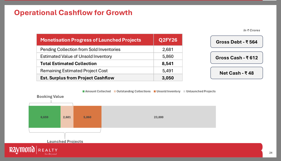 some of my enquiries with not so reliable real estate people in this area suggested a around Rs70cr per acre around Raymond and Pokharan road , so the remaining land is valued easily more than entire company, big overhang here is Legacy Raymond corporate governance and Realty is relatively new , may need 3-4 more years of execution with credibility.