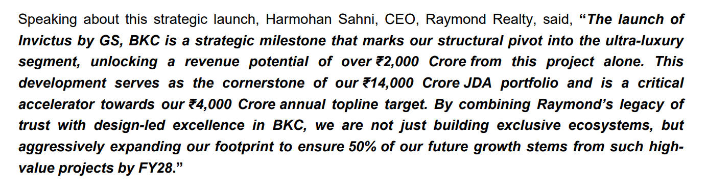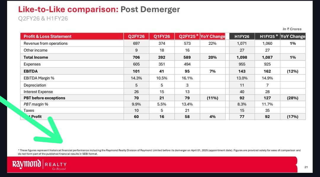 “These figures represent historical financial performance including the Raymond Realty Division of Raymond Limited before its demerger on April 01, 2025 (appointment date). Figures are provided solely for ease of comparison and