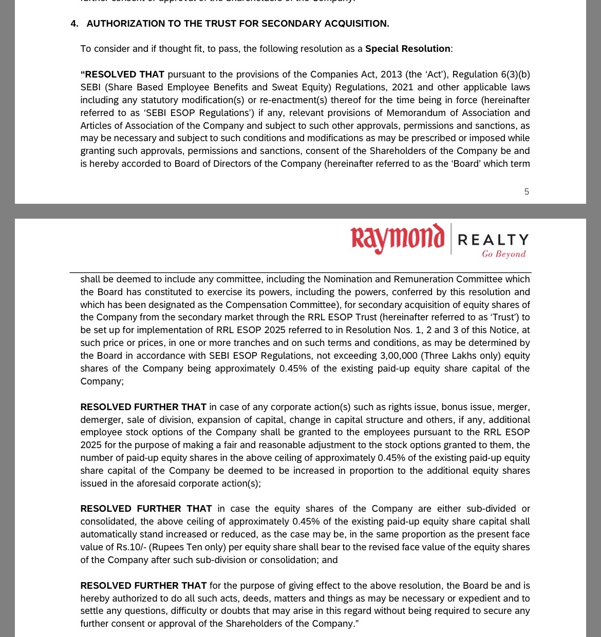Raymond Realty wants to create a trust to issue ESOPs with an exercise price of INR 404