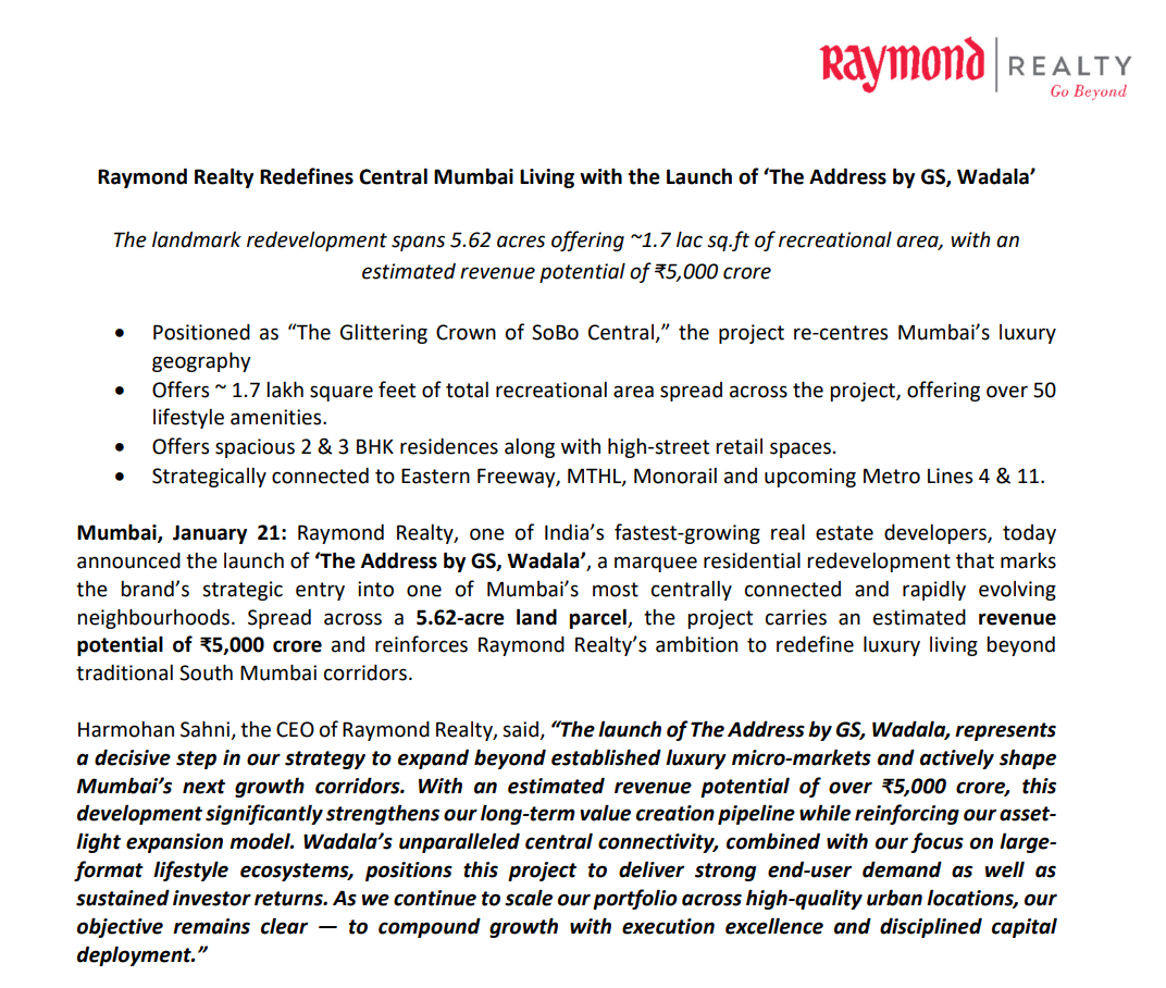 The Address by GS, Wadala launched officially. It was planned by Q3 end itself, so a delay of 3-4 weeks here.