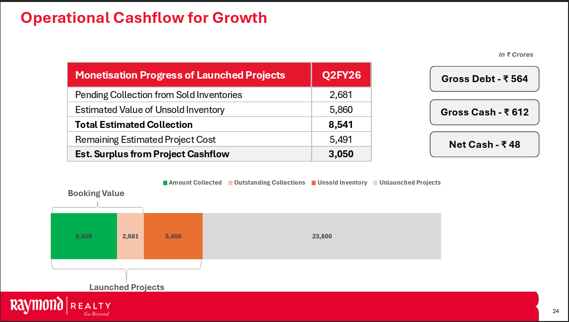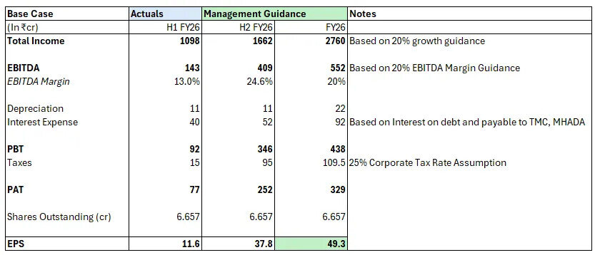 Slight arithmetic error here, so projected booking value for H2FY26 as per company would be ~ 2050 crores and taken together with H1 numbers, pre sales for FY26 should be ~2800crores which is growth of ~21% YoY. Given the history that the management is conservative in giving guidance, my estimate of pre sales for FY26 is between 2900-3000 crores.