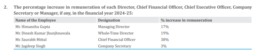 The percentage increase in median remuneration of employees in financial year 2024-25: 9.74% (Vs 24.7% in last FY)