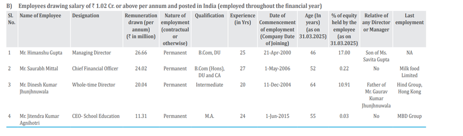 (PAT is 60cr. Salary drawn by 2 promoters is 4.6cr and CFO salary seems very high as well at 2.4cr. 8cr salary drawn by top management – 13% of PAT)