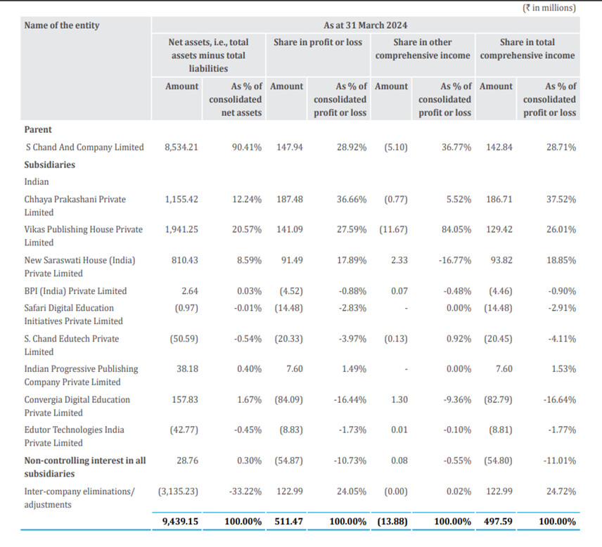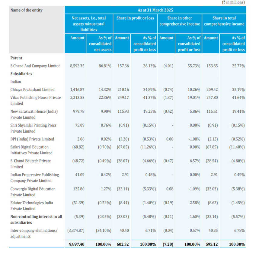 • S Chand has been a minority investor in Smartivity since August 2015, starting with a seed investment and has invested ~ ₹ 20 million in the company across funding rounds. For FY 2024-25, Smartivity is EBITDA and PAT positive and has shown revenue growth of 45% and EBITDA growth of 176% over last year. The current round of secondary market transactions valued the company at ~ ₹ 150 Cr., putting our stake valuation in the company at ~ ₹ 230 million.