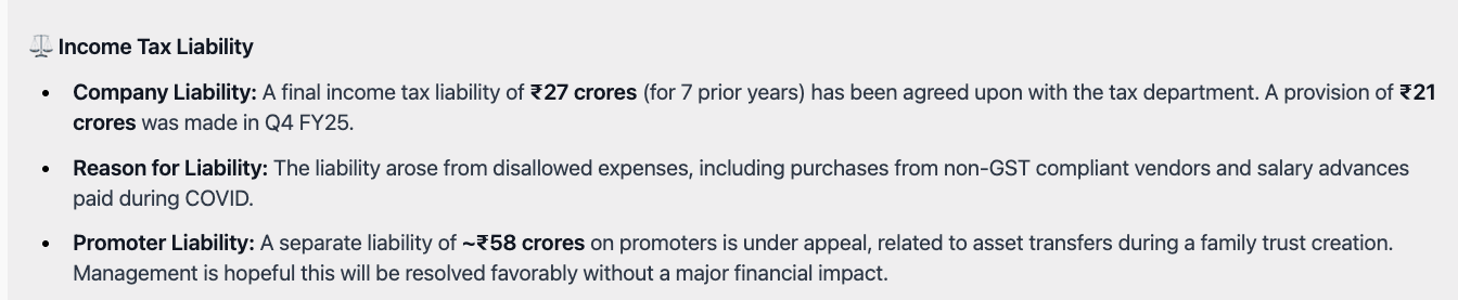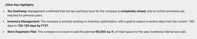 LY, third Qtr was a bumper Qtr for the company. Hence the growth rates seen in H1 should moderate going forward. On a full yr basis, company estimates - they may hit 1750 cr kind of sales vs 1462 cr clocked LY. That would mean a 20 pc kind of growth for full FY 26 over FY 25