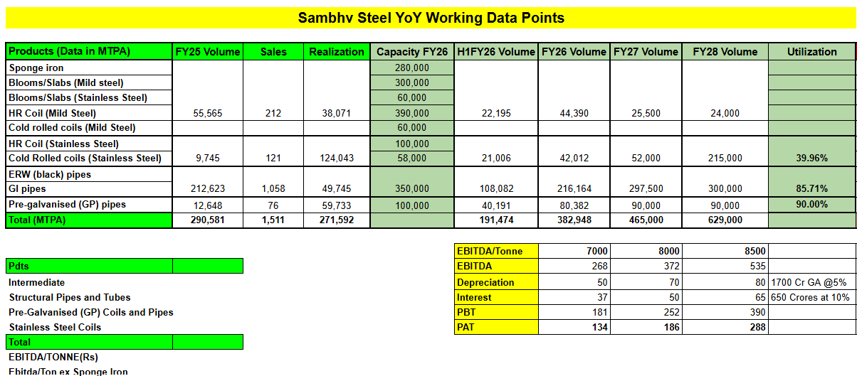 My take - FY27 will be consolidation phase for Sambhv bcoz not much new capacity addition is coming. So YoY growth will be tapid 10-15% by achieving maximum utilization level. Game changer will be FY28 onwards. If import duty comes in SS category along with new capacity addition that will be bonanza.