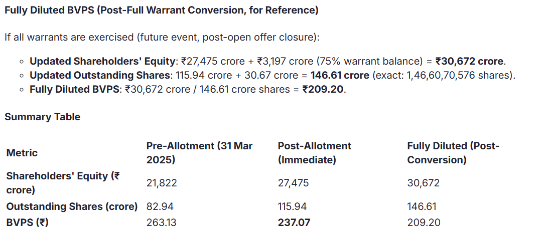 As acquisition price is at discount to book value it will dilute the book value as per below calcuation done by Screener AI