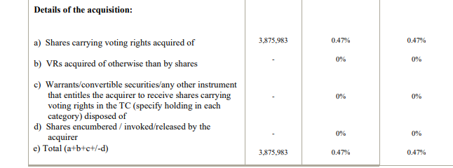8.6cr by way of warrants (Tranche 1) at INR139 per share leading to infusion of INR1,208cr. The Tranche I Warrants shall be exercised within 26 (twenty six) weeks of the expiry of the period of the Open Offer, undertaken in compliance with the SEBI (Substantial Acquisition of Shares and Takeovers) Regulations, 2011.