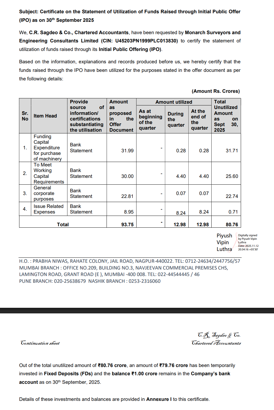 IPO proceeds of ₹33.96 crore were diverted away from the stated utilisation plan in the prospectus.