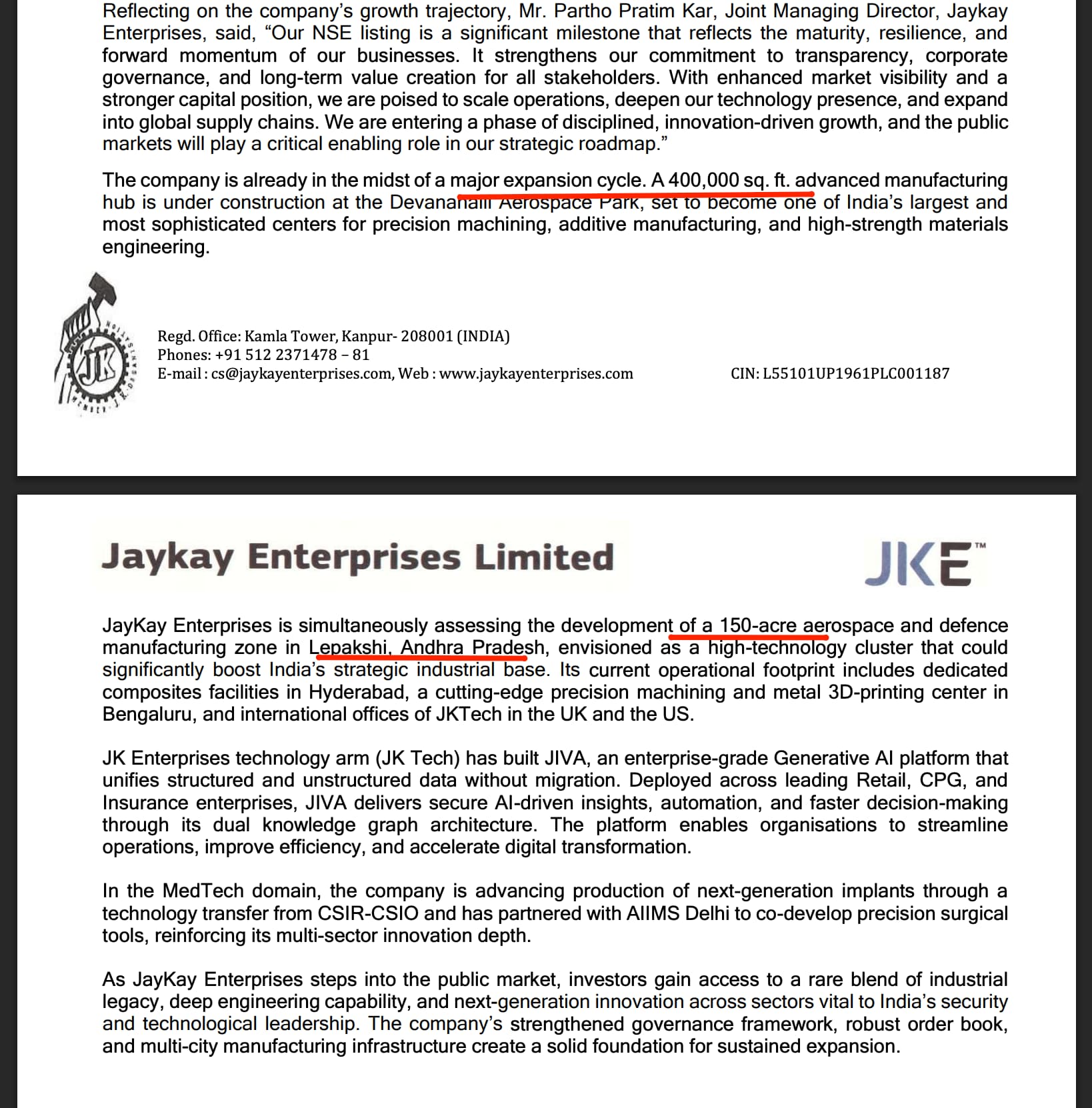 Ongoing capex includes a 400,000 sq ft advanced manufacturing hub at Devanahalli Aerospace Park and evaluation of a 150‑acre aerospace and defence manufacturing zone at Lepakshi, Andhra Pradesh, along with existing composites facilities in Hyderabad and a precision machining and metal 3D printing centre in Bengaluru.