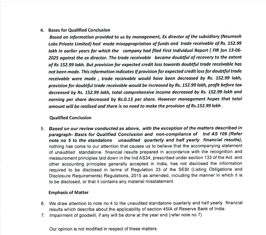 This is a known issue and Company had informed the exchanges many months ago, this was a fraud done by ex Nuemesh labs director. Above snippet is from AGM note i posted here on oct 1st 2025.
