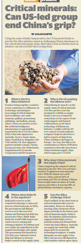 The article suggests a challenge is unlikely in the short term because mineral investments take years to yield results. However, a “Quad-style” blueprint could work: Australia supplies raw materials, while the US and Japan provide the technology, and India serves as the manufacturing hub.[Summary From Gemini]