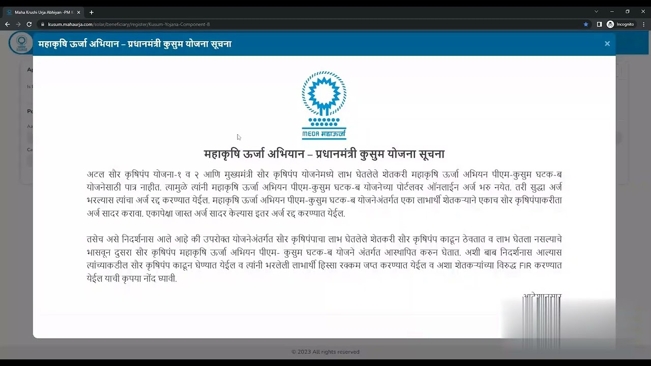 - Preference be given to the farmers using Micro irrigation systems or covered under Micro irrigation schemes or who opt for micro irrigation system.
