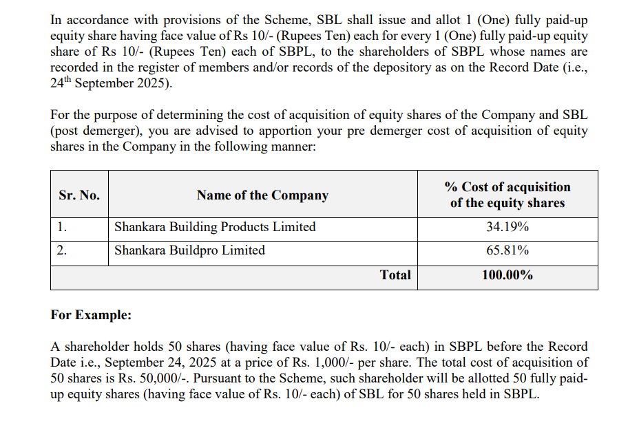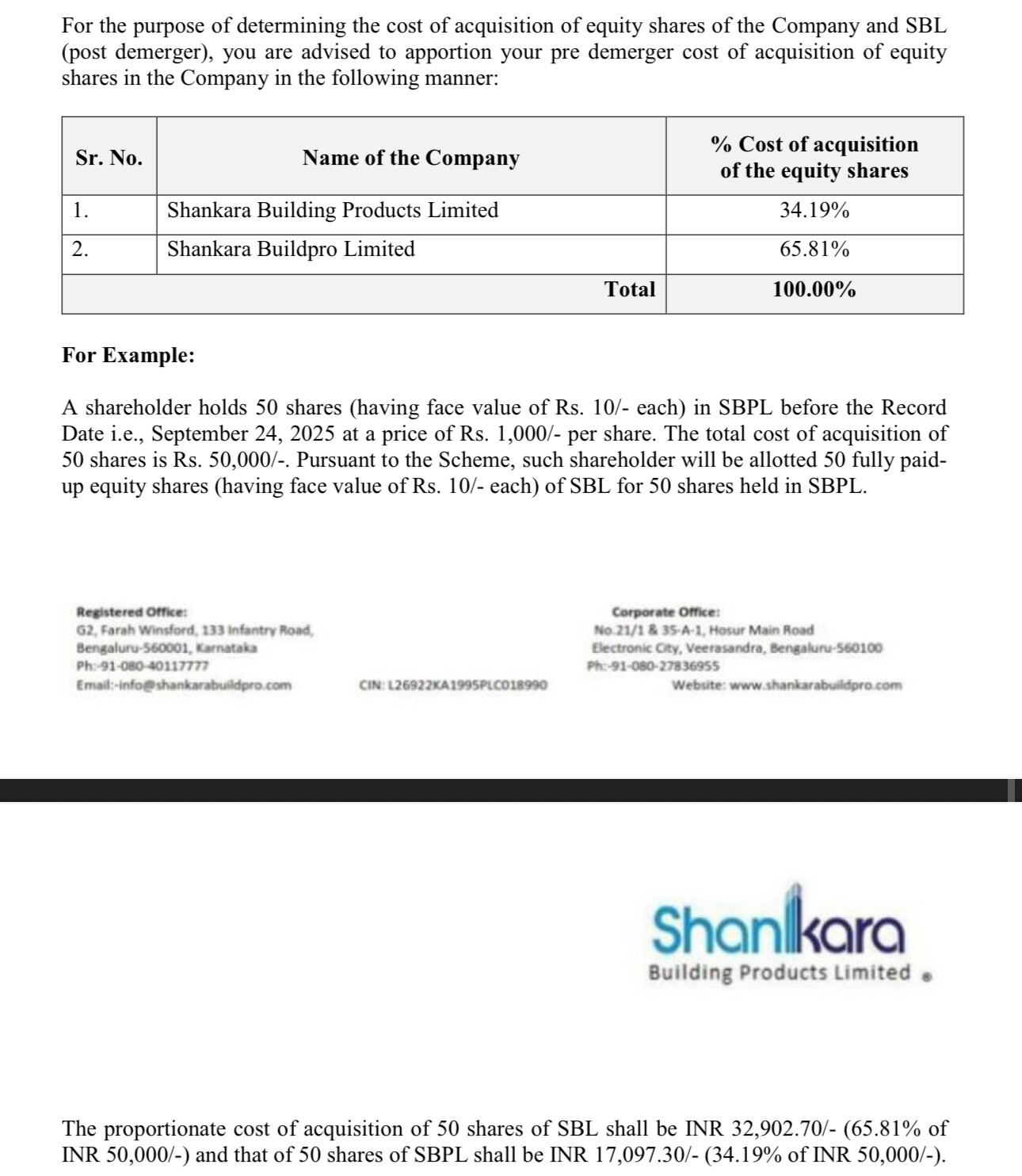 that means that valuation is going to the demerged entity Shankara Buildpro