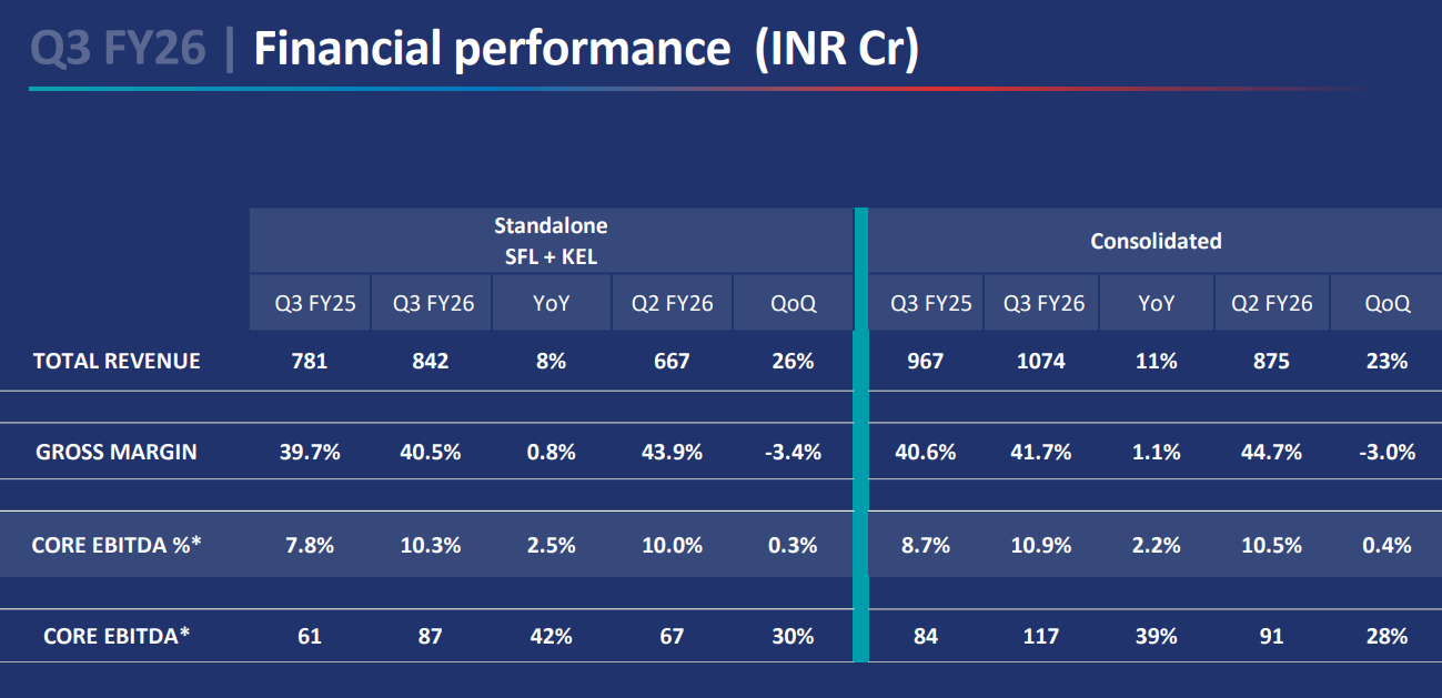- They have been extending the period when the benefits will accrue from the acquisition . If you the FY24 numbers - Reported at INR 850 crores, which was an increase of 10% year-on-year. However, compared to Q3FY25 (INR 967 crores), consolidated revenue decreased by 12.1%.