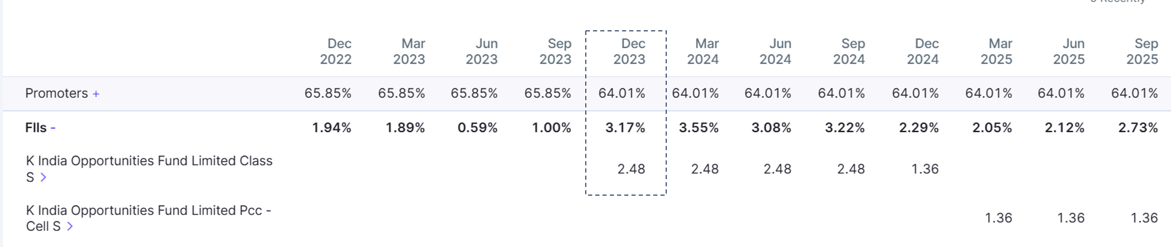 There was a round of promoter selling in Dec 2023 too, when a FII had entered the counter at the same time.
