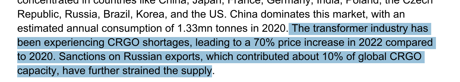 For Shilchar, management is not concerned about CRGO shortage, although voltamp clearly struggled with the shortage. Yes, increased demand always leads to increased topline, although not sure about margins, Shilchar is already sitting on industry leading margins not sure how much they can stretch from here. As soon as they get order they book the RM eliminating RM price fluctuations so increased prices of RM are already factored into order value.