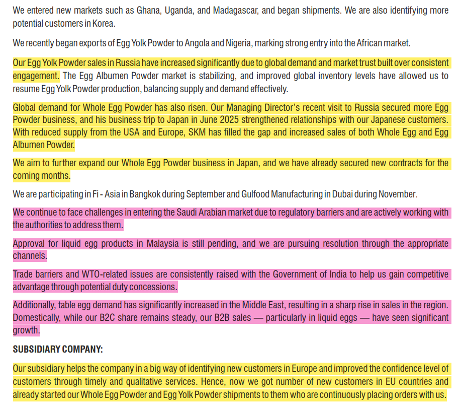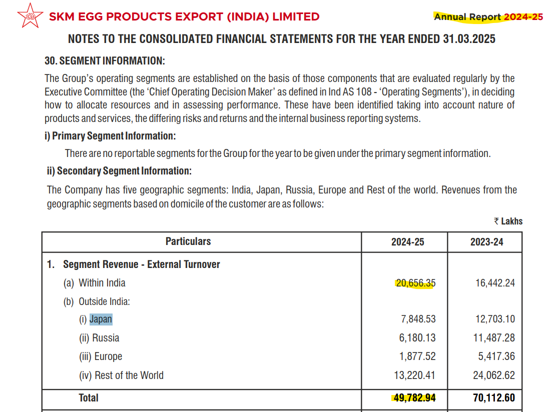 Large part of domestic sales is where they sell feed to the farmers and in turn buy eggs as per terms agreed. Thus actual domestic sales is much lower than what the above numbers suggest. Refer Pg 190 of the annual report. Broadly domestic sales will be ~ 15% of total.