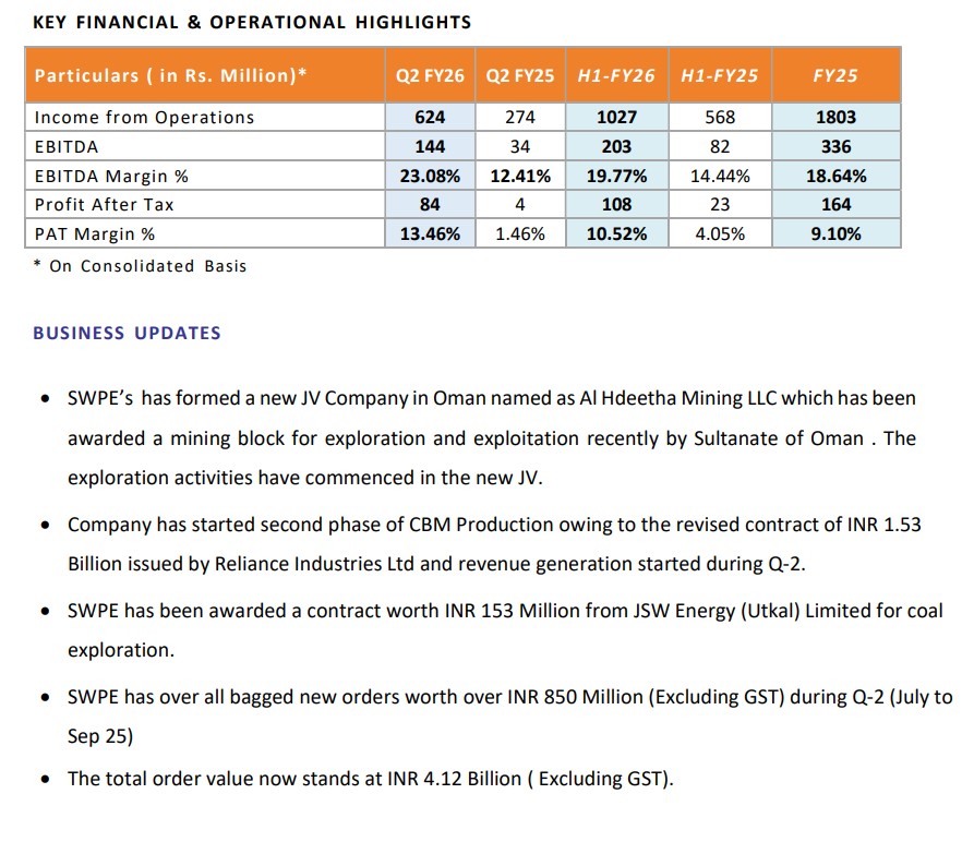 The company has won orders from Reliance Industries for CBM, has entered into a JV in Onam for copper mining and has won a coal block in Jharkhand. This makes the company a full fledged exploration and mining company.