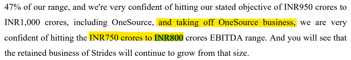But Stride core business trading at 1.8 times sales is a bit of disappointment so far. Need to analyze a bit more. if there is an opportunity to enter. The snippet from Q2 investor call reflects that for core strides business the EBITA for FY25 would be between 750-800 Cr. and current valuation is Rs 6291 Cr. which is just 8 times EBITA.