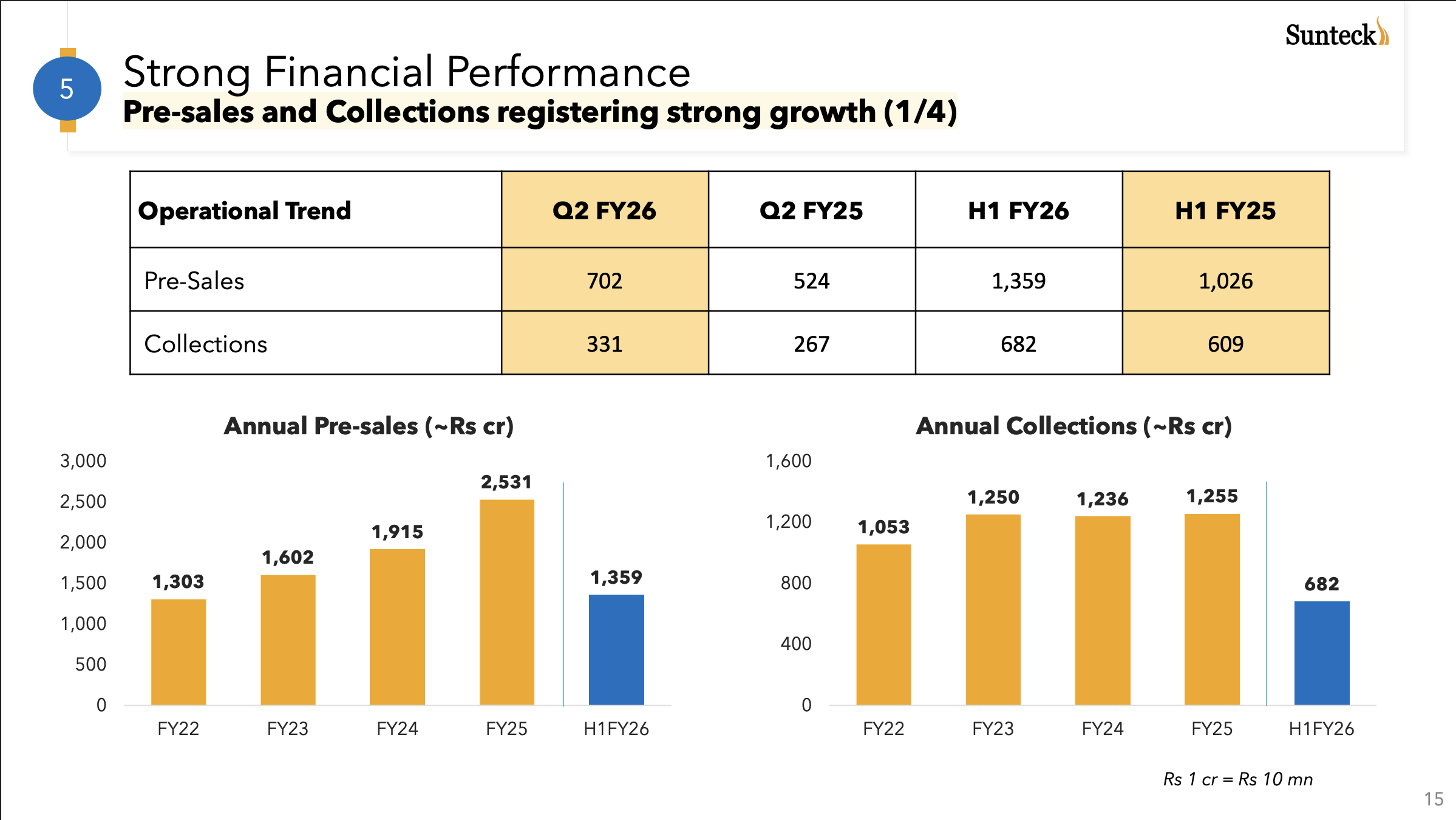 Will launch a new phase in ODC, 2 towers in Sunteck Beach Residences, 1 tower in Sunteck Sky park and Crescent Park in H2 of FY25 with a combined GDV of 3000cr (approx).