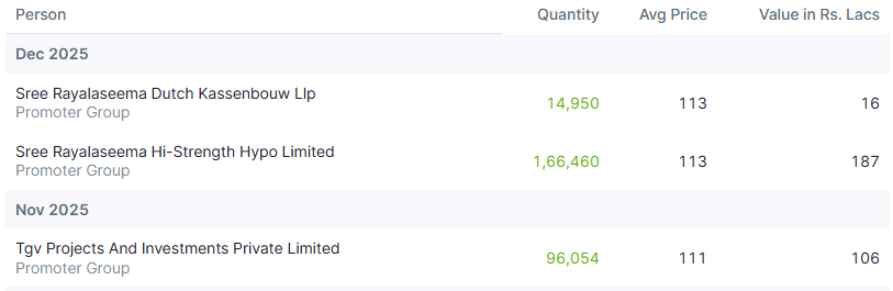 Promoter bought more stake in November & December at Rs. 111 per share.