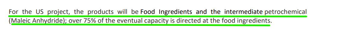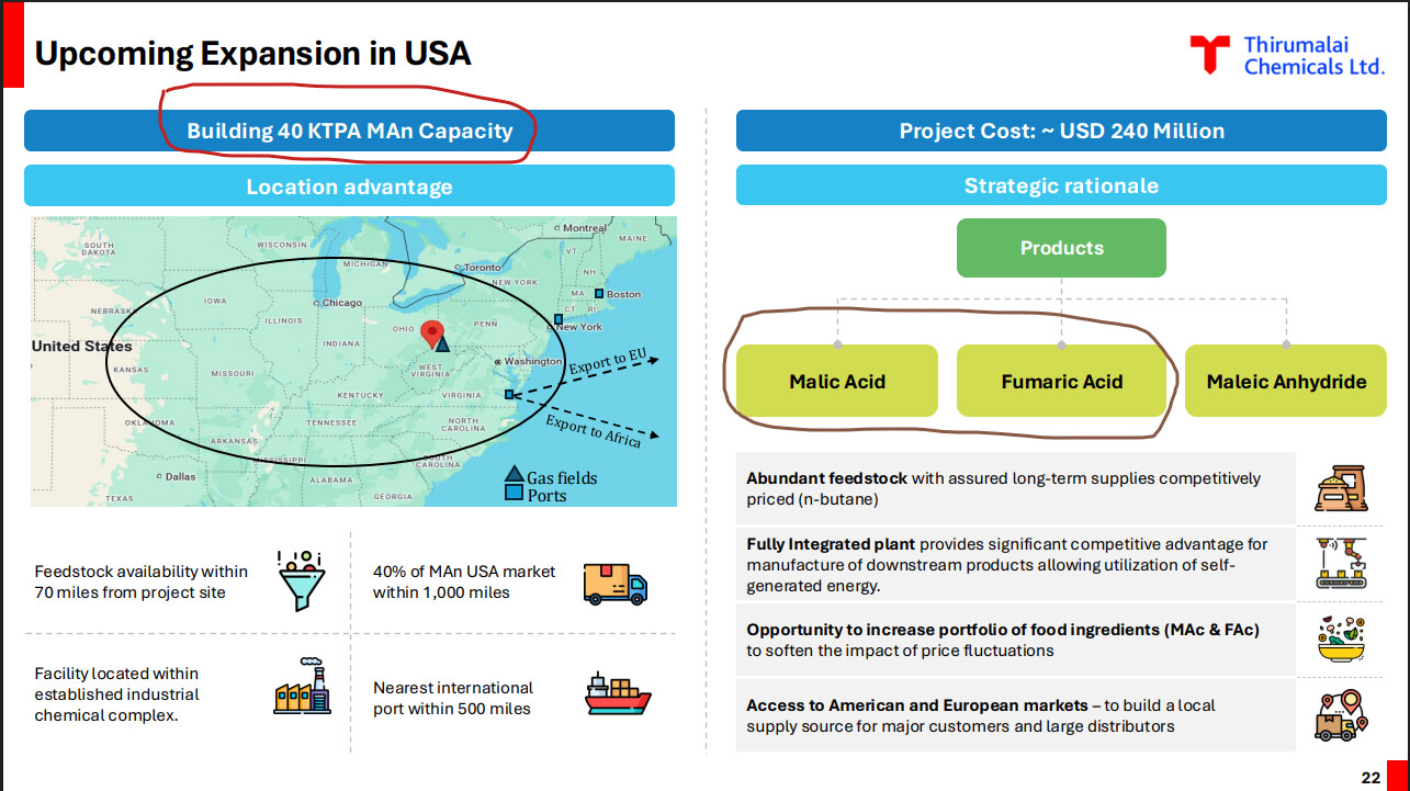 But in the AGM speech, management has clarified that 75% capacity is directed towards food ingredients - Fumaric and Malic acid.