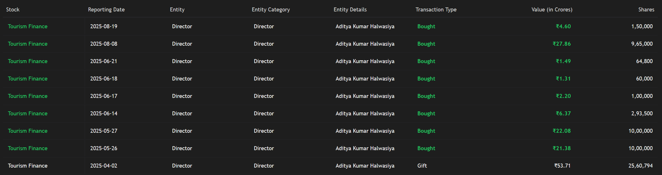 Director (Aditya Kumar Halwasiya) has bought 3.04% of the market cap in FY26 till now.