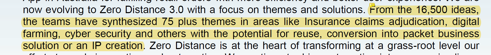 - During a concall from Q1FY18 Infosys said it is working on “packet business solutions” created from 16,500 ideas it generated internally. This indicates Infosys may be able to deliver services in a shorter time compared to competitors, which any client values.