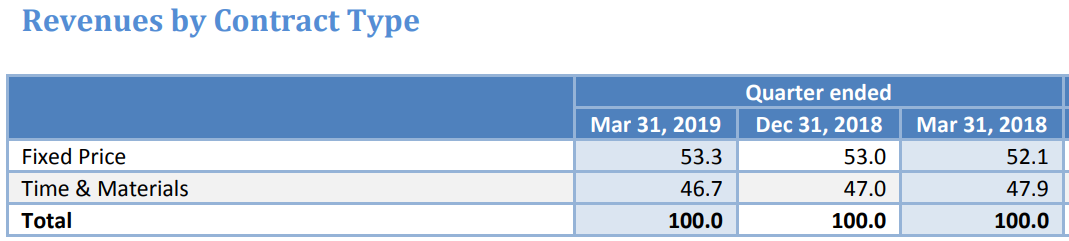 For a large IT service provider, a trend of increasing fixed-priced contracts is a positive sign as it indicates a better margin assuming they deliver the work without hiccups.