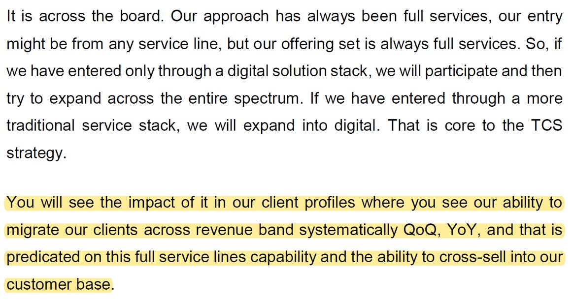 TCS’s CEO in Q4 FY18 noted that offering “full service” has been their key strategy.