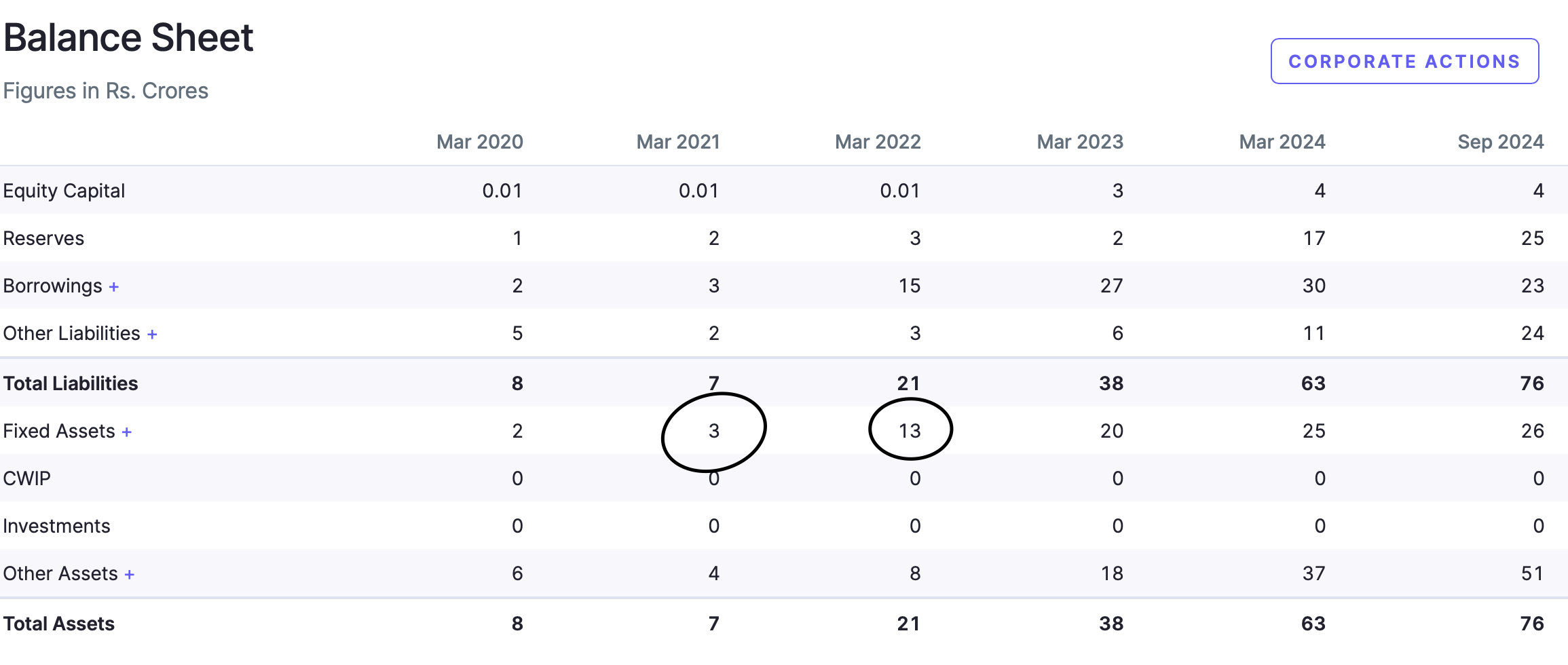 The company has a debt to equity ratio of 1 which some investors may find on the higher side but some beleive its manageable. The company has almost doubled its net block from 14cr in 2023 to 25cr in 2024.
