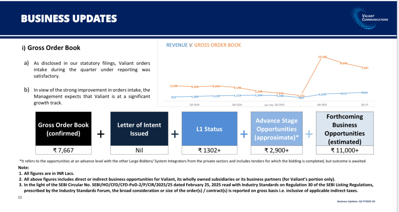 The company got a few large orders from Gesco and Tejas a few quarters ago which lifted the company revenue to 40 crores per year to 80crore year range . As per their latest update in after Q2fy26 they still have almost 10 months worth of orders at the current rate .