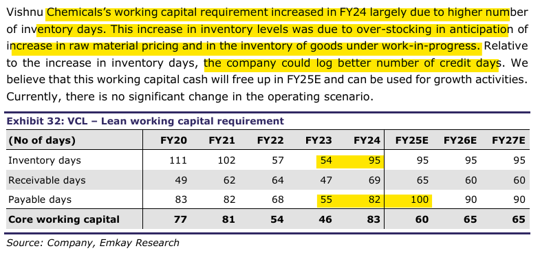 The commentary from Emkay Research is satisfactory. However, working capital intensity is likely to trend downward. Erstwhile, VCL imported 100% of its chrome ore requirements and maintained higher raw-material inventory to ensure uninterrupted production.