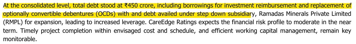 As of Nov 2025, consolidated debt stood at ₹450 crore.