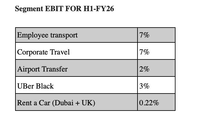 Dubai Entry: On September 13, 2023 the Company has established a One-Person Company LLC in the Emirate of Dubai, namely, WTI RENT A CAR L.L.C with the objective of providing car rental services. Started in December 2023, they already have 100 vehicles as of June 24, Breakeven expected in next 4-5 months (June Concall). The management believes that the scale in Dubai have to be large to justify higher operations cost.