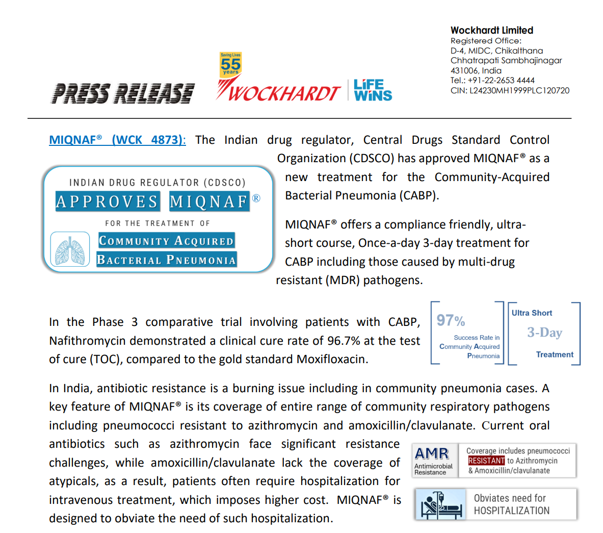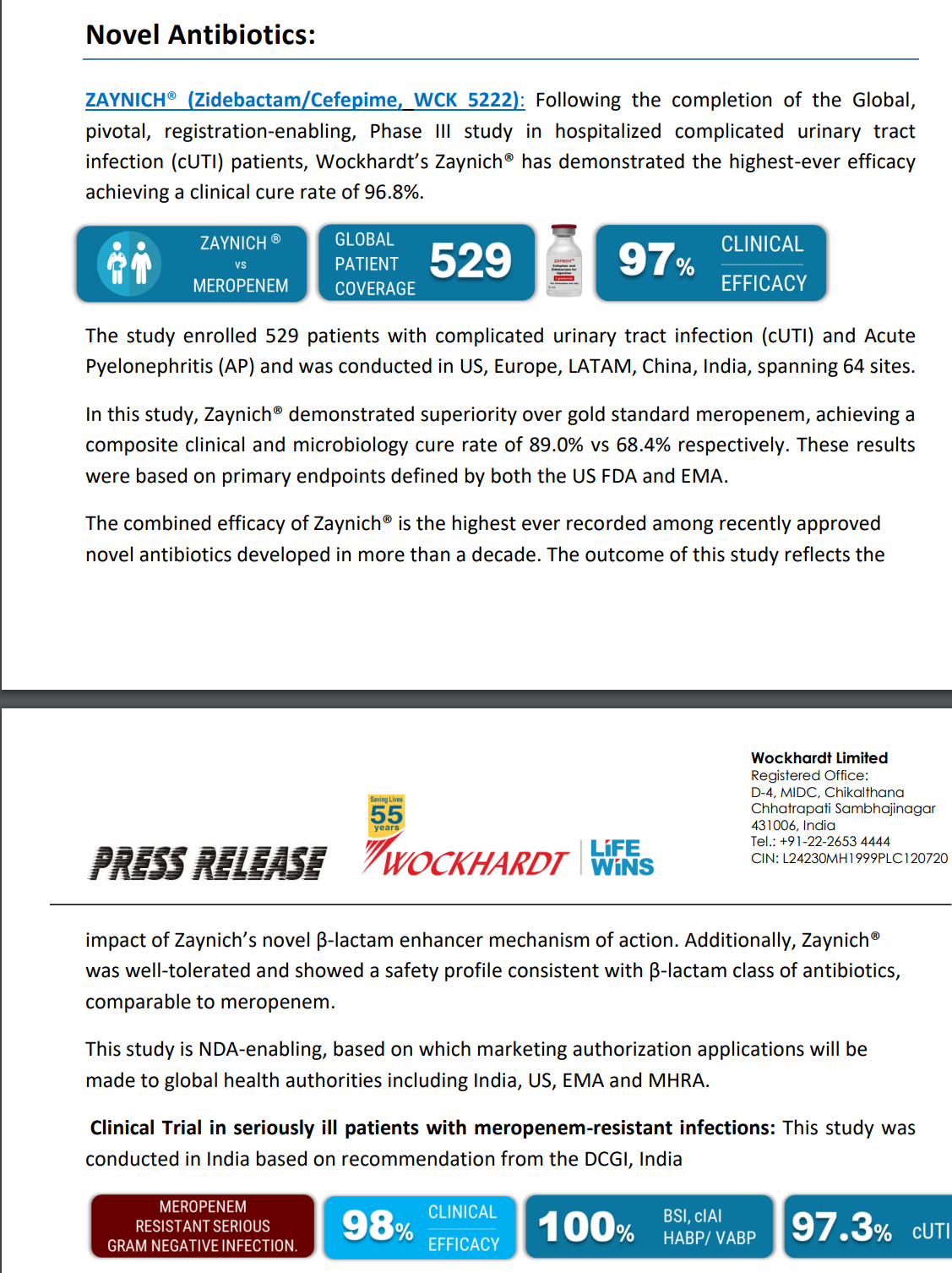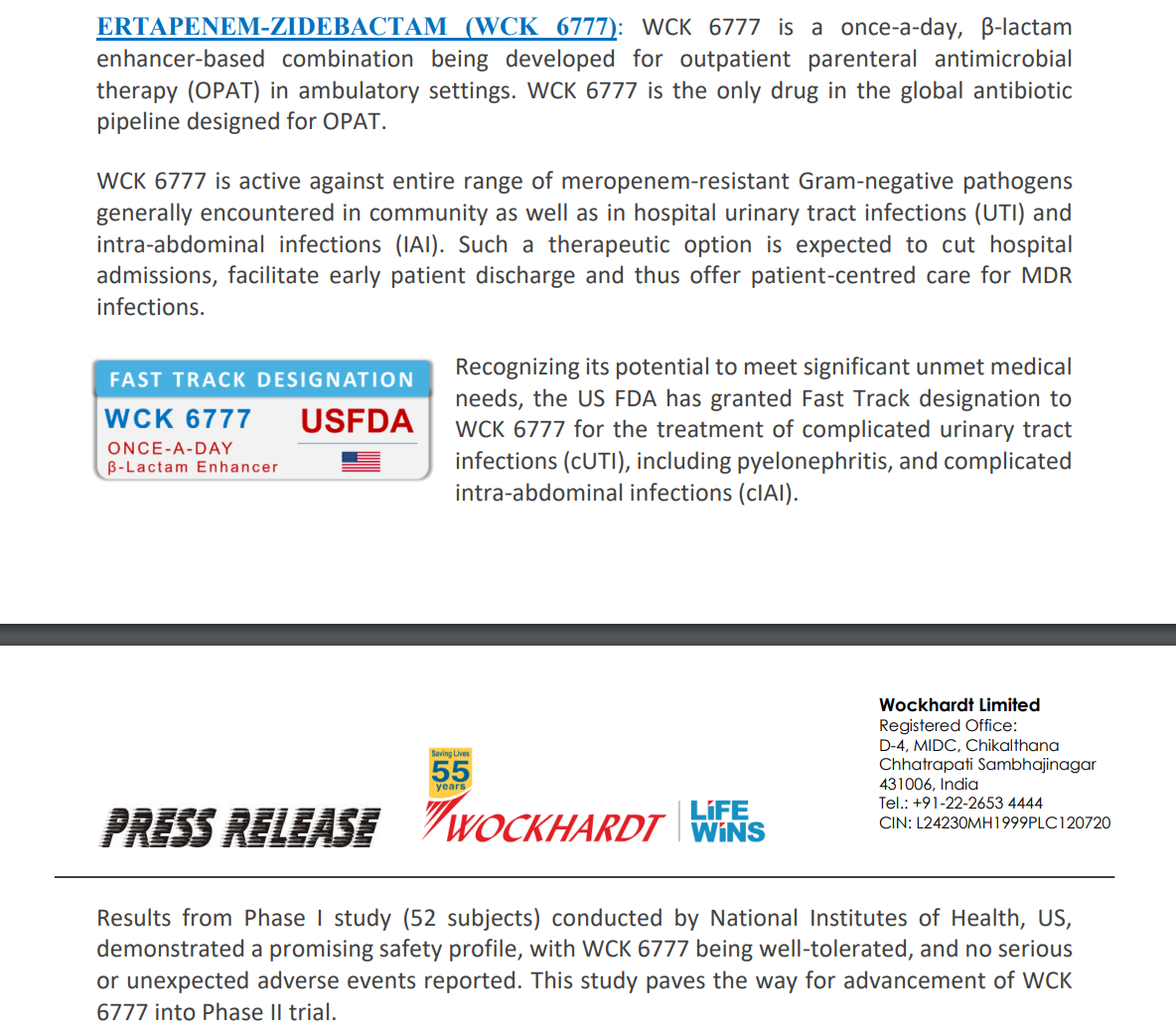 Given the peak sales for WCK-5222 can be anywhere from $2Bn to $3Bn, the upfront/milestone payments that Wockhardt will get can be $400 Mn to $750 Mn. Plus Royalty.