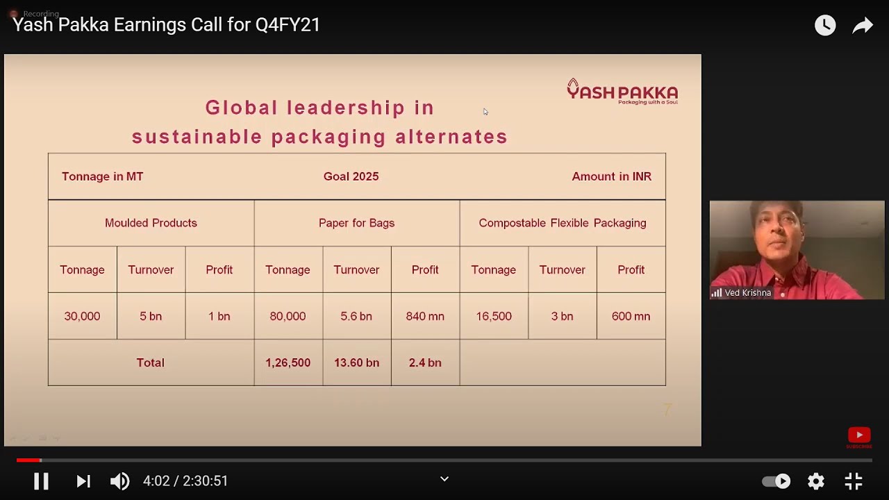 Just for the benefit of everyone on this thread. I recently attended the Paperex 2019 in Delhi where they (Yash Pakka Limited) had a stall. They have launched 2 new papers - one for food packaging and other for carry bag. It appears from the conversation that there are no other Indian players who has come out with such quality of papers.