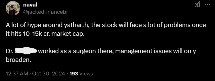 This was 2 days before the announcement of another QIP of 700 Cr. on 1 Nov. 2024 and after looking at the issue size, it was the end of story for me. The company would have easily touched 10,000 Cr. market cap had they not done another QIP and if market didn’t lose its momentum but it does not matter, at the end fundamentals win. I had exited my position long back after I realized it was not the gem I was hoping it to be.