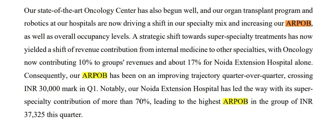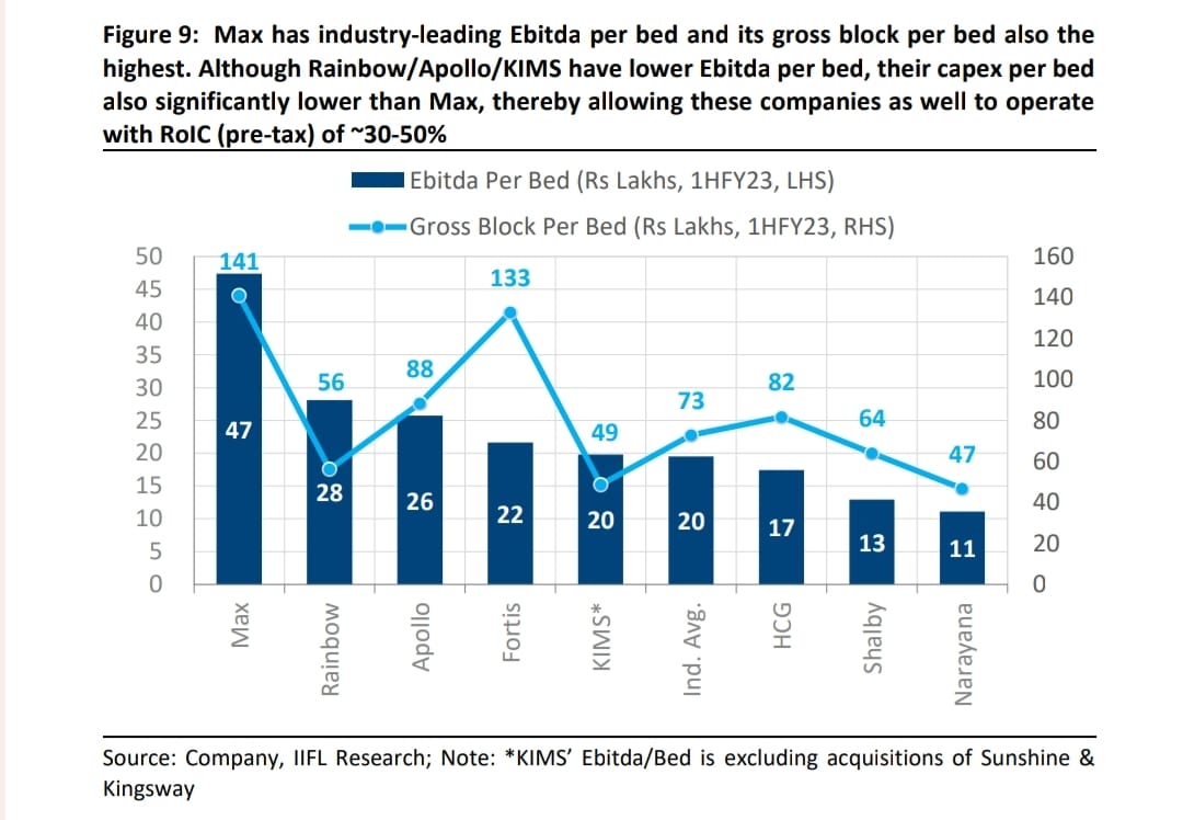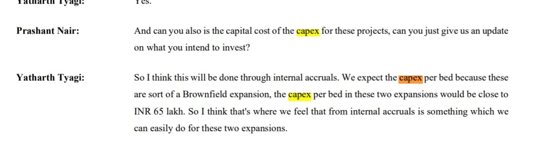 1. Capex per bed - This was a little shocking for me that their Capex per bed was around 65 Lakhs, because earlier I was under the impression that their Capex per bed was one of the lowest in the industry.